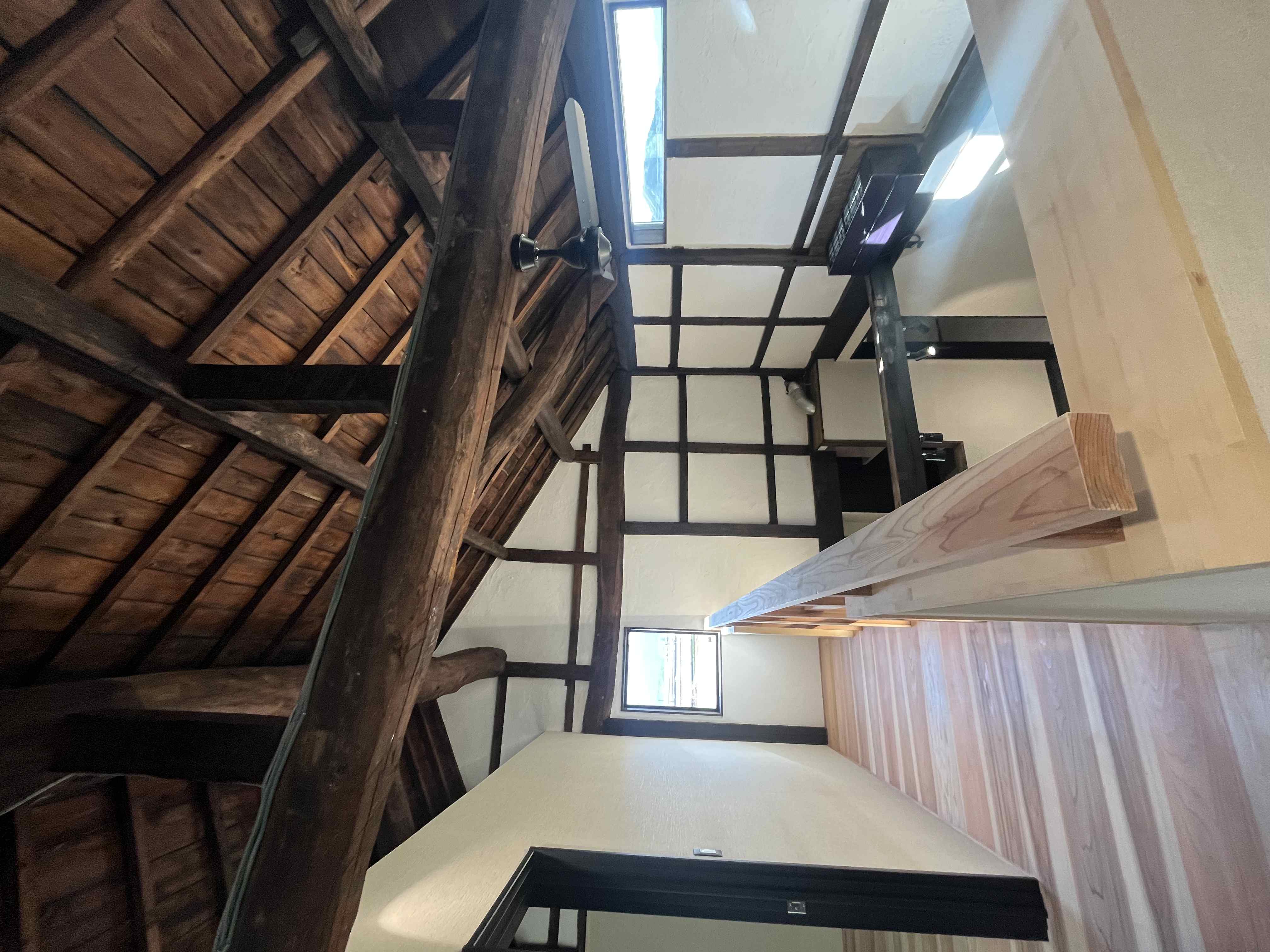 分厚い杉の板を、二階の床と一階の天井になるようにして敷いてもらっています。